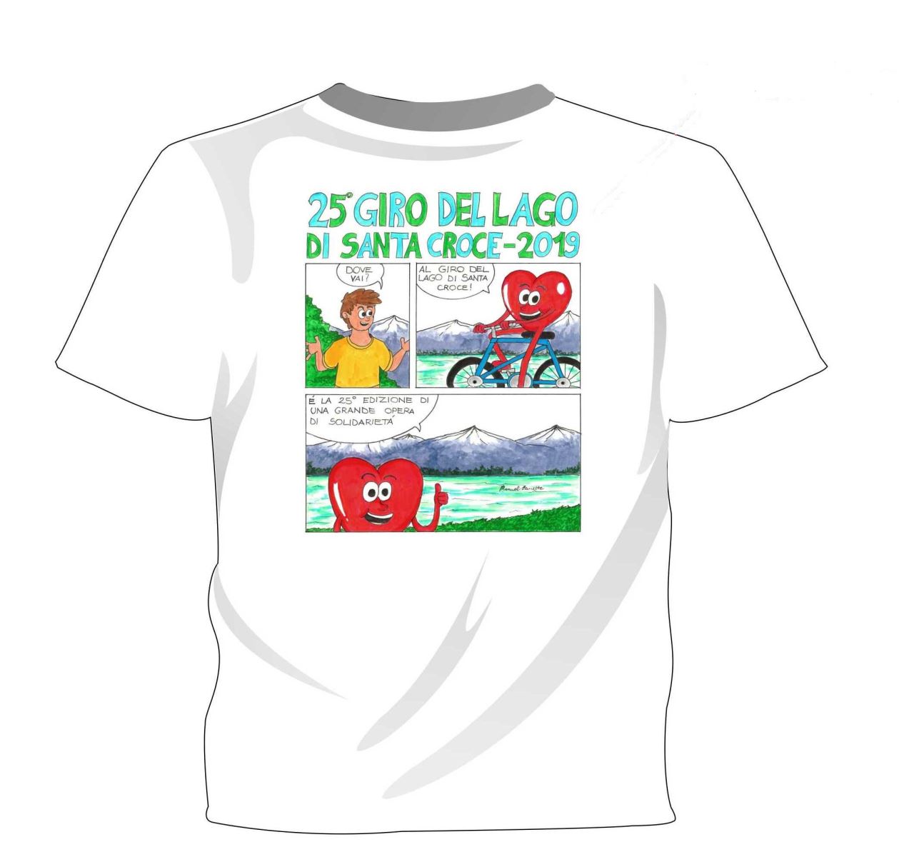 Il fumetto del trevigiano Manuel Zanette per la maglietta del 25° Giro del Lago di Santa Croce: «Facciamo pedalare i nostri cuori»