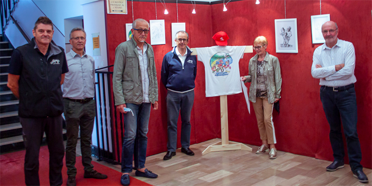 La maglietta del Giro del Lago disegnata da Villanova. Una mostra, e la solidarietà non s’interrompe