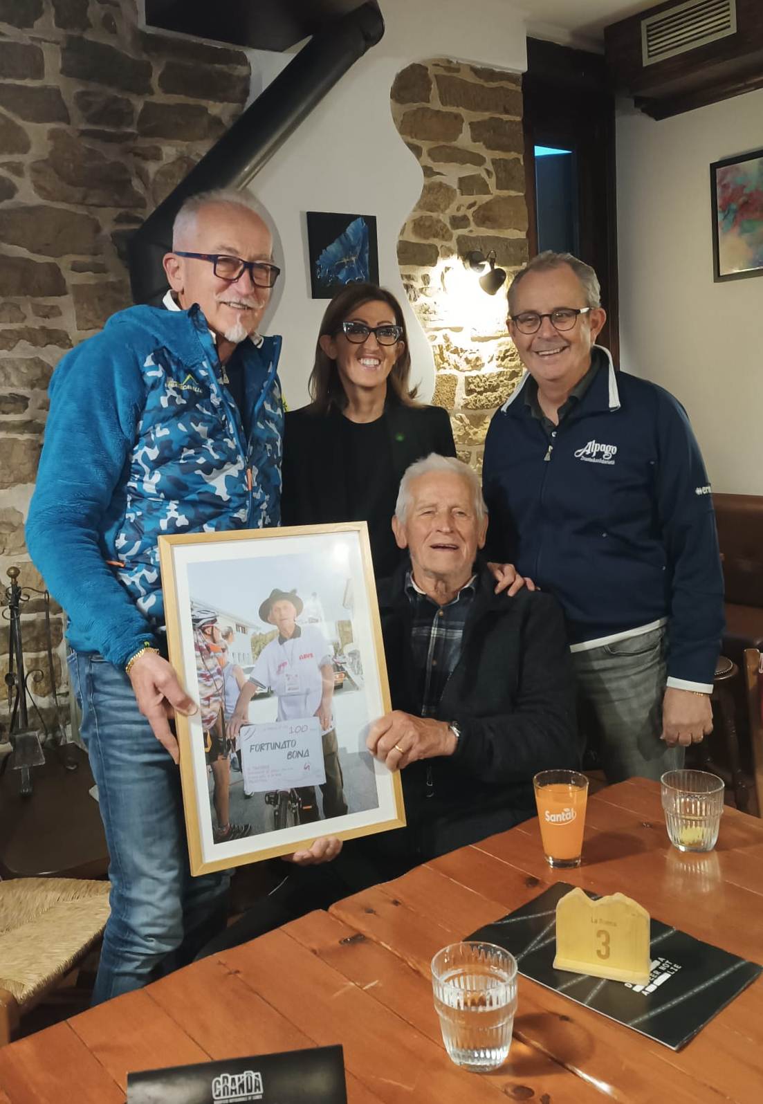 Nei giorni scorsi Ennio Soccal, Presidente del Comitato Alpago 2 Ruote & solidarietà, insieme al consigliere Edi Peterle e al sindaco del Comune di Tambre, Sara Bona, hanno consegnato un piccolo omaggio a un grande amico del Giro del lago
