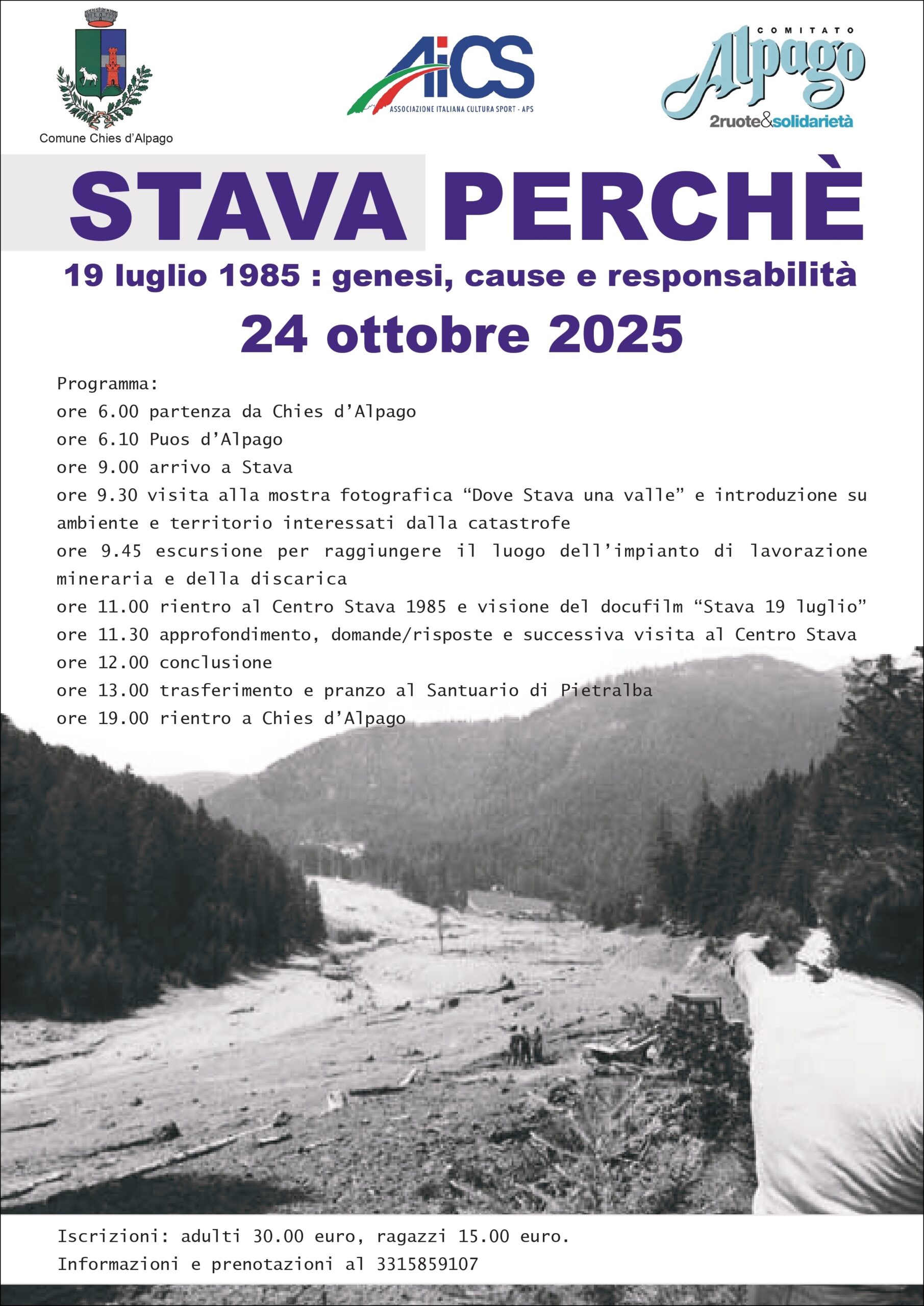 Per ricordare, comprendere e non dimenticare, a 40 anni dall’accaduto, il Comitato Alpago 2 Ruote & Solidarietà, Aics e Comune di Chies d’Alpago, organizzano per venerdì 24 ottobre una “gita” a Stava, un’intera giornata di memoria e riflessione sulla tragedia.