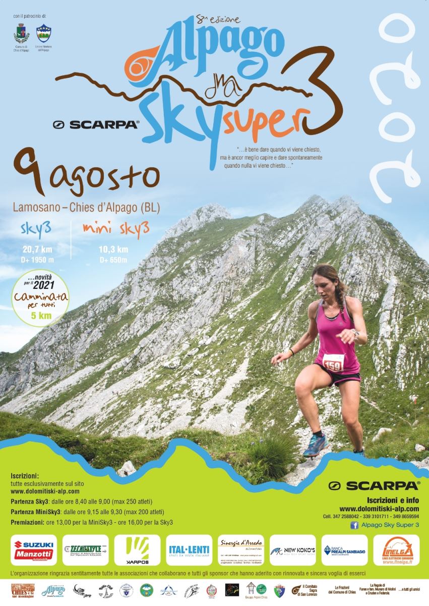 Chies d’Alpago (Belluno), 22 luglio 2020 – Alpago Sky Super 3 non si ferma. La sky race che a Chies d’Alpago (Belluno) vuole onorare la memoria di Andrea Zanon, David Cecchin e Maudi De March, i tre ragazzi del Soccorso Alpino caduti sul Monte Cridola nell’estate del 2012, si svolgerà domenica 9 agosto.