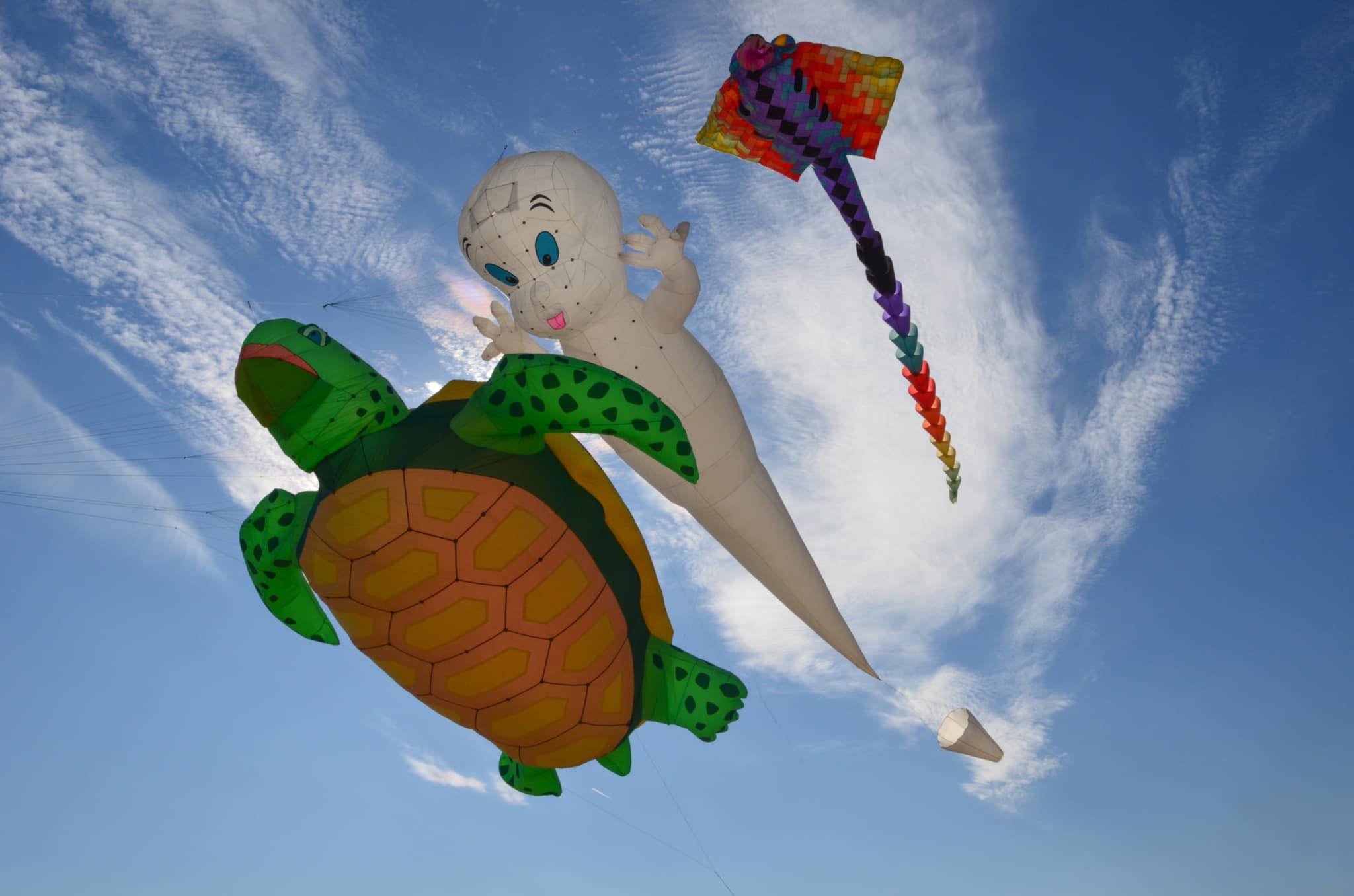 Volo di Aquiloni Statici: durante l’intera giornata aquilonisti professionisti porteranno in volo i loro aquiloni statici. Dai maestosi aquiloni gonfiabili tridimensionali, che possono superare come dimensioni anche i 400 mq di tessuto, ai classici aquiloni con le stecche, anche se definirli “classici” non è appropriato.