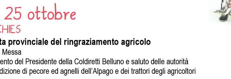 ANCORA UNA VOLTA GLI AGRICOLTORI BELLUNESI UNITI PER IL FUTURO Era lo slogan della giornata del Ringraziamento a Cesiomaggiore. Ed è lo stesso per la giornata del Ringraziamento n.70 prevista da Coldiretti Belluno a Chies d’Alpago il prossimo 25 ottobre. Uniti per