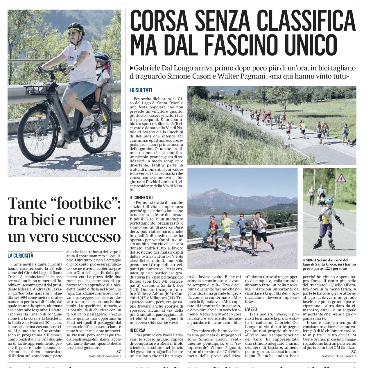 Di seguito, cliccando sul link relativo, puoi leggere cosa scrivono e pensano di noi le principali testate giornalistiche locali, tradizionali e online, e più nel dettaglio trovare i commenti su una manifestazione, il Giro del Lago di Santa Croce, che nel tempo si è ritagliata uno spazio importante nel panorama sportivo amatoriale triveneto.