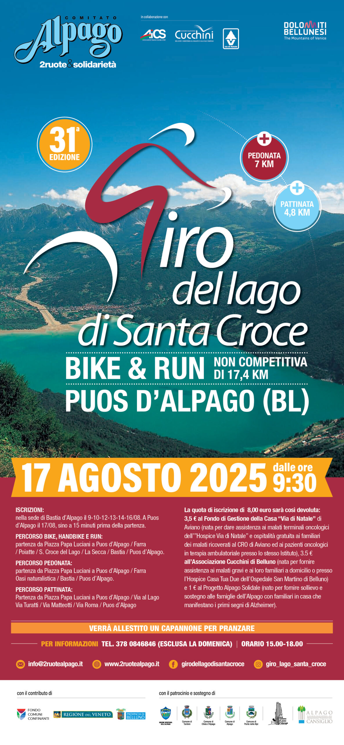 Alpago (Belluno), 13 agosto 2025 – È tempo di Giro del Lago di Santa Croce. La manifestazione multisport, appuntamento storico dell’estate bellunese, organizzata dal Comitato Alpago 2 Ruote & Solidarietà, si svolgerà domenica 17 agosto e celebrerà l’edizione numero 31.